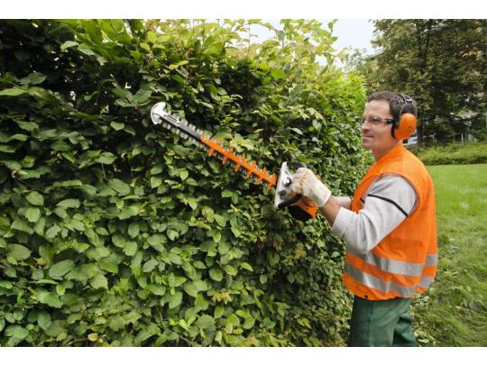 Lichte benzine heggenschaar. Ideaal voor hoveniers en landbouwers. STIHL antivibratiesysteem, STIHL ErgoStart, longlife-luchtfiltersysteem, 2-MIX-motor, gereedschapsloze tankdop, dubbelzijdig geslepen messen, opgeschroefde zwaardbeschermer tegen snijwonden.